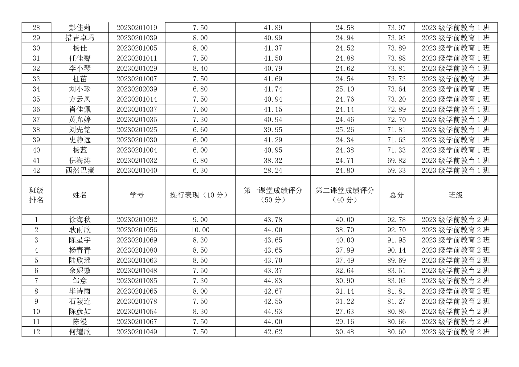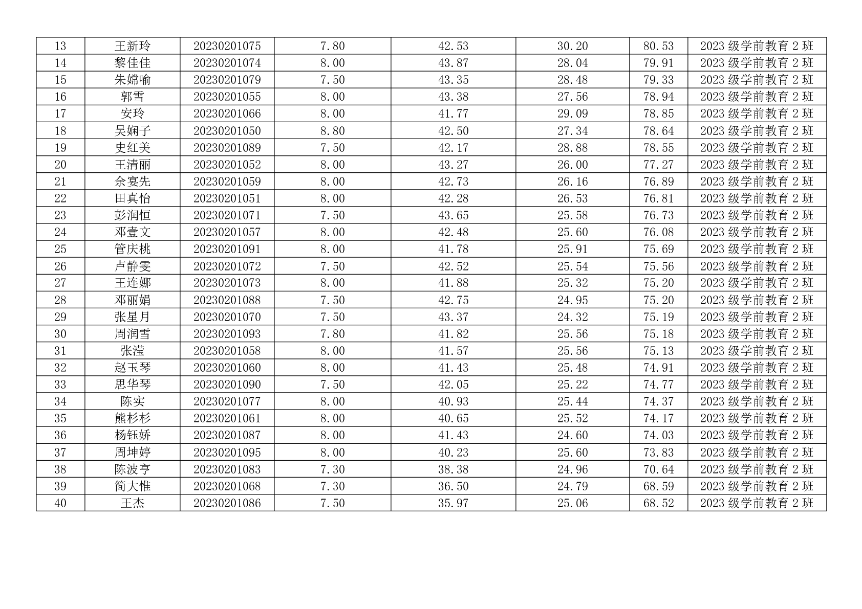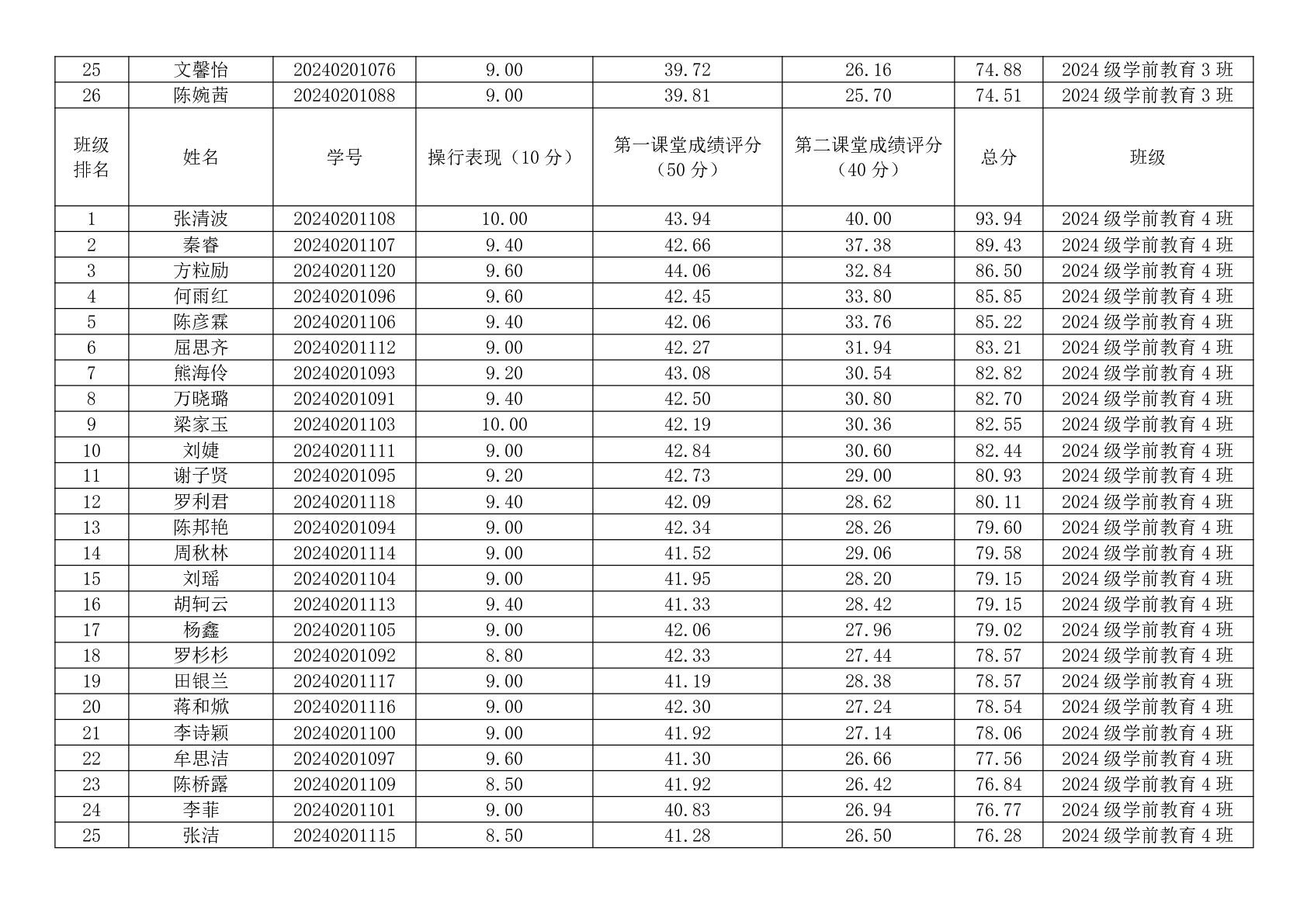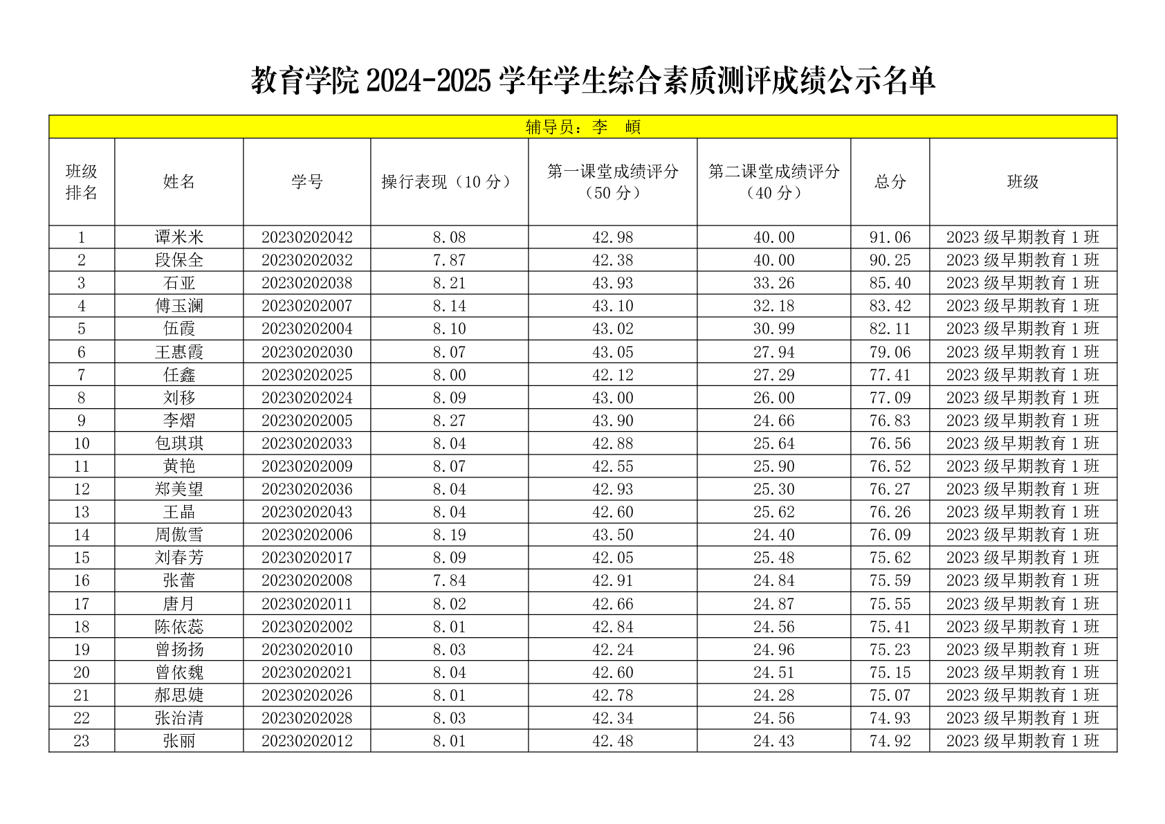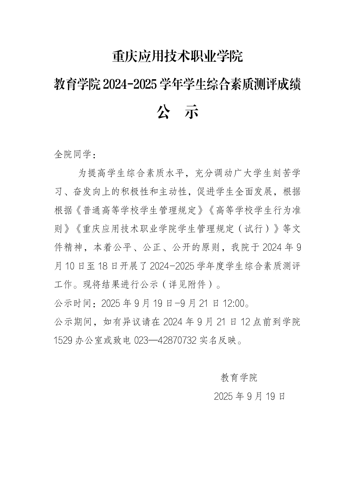 教育学院2024-2025学年学生综合素质测评成绩公示