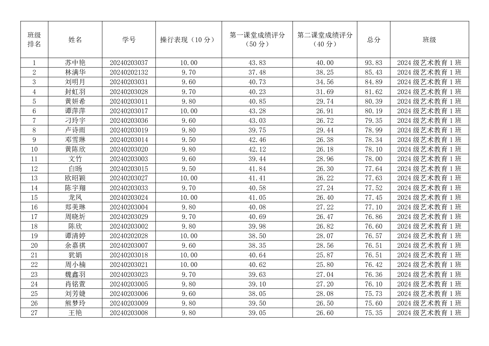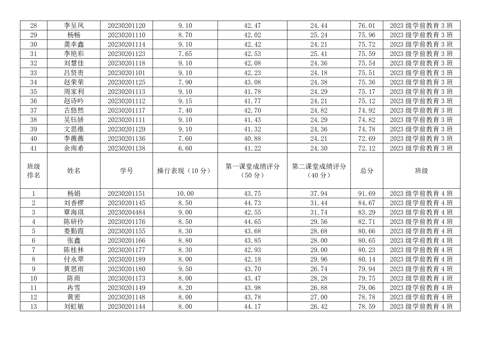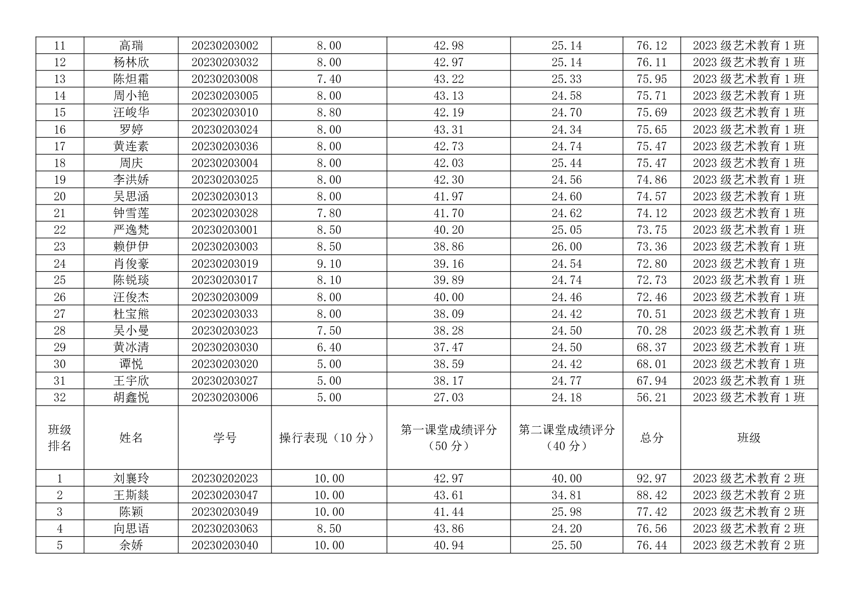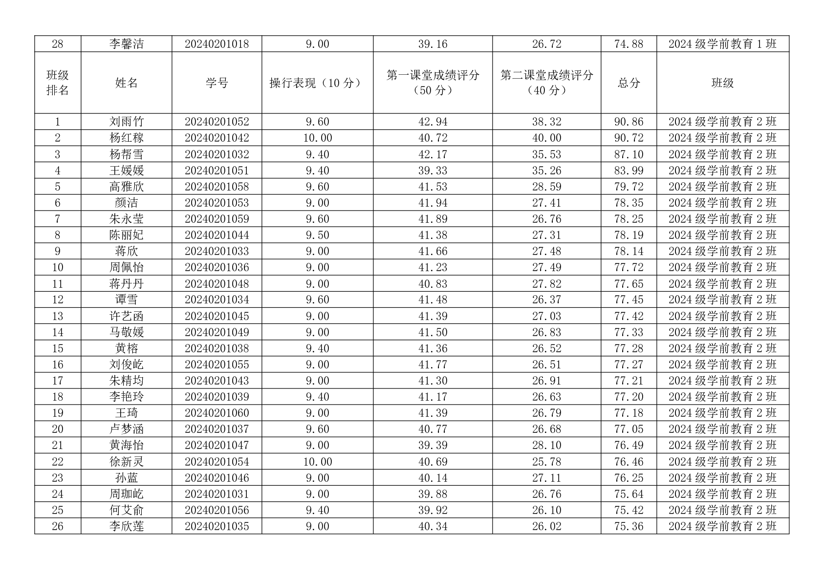 教育学院2024-2025学年学生综合素质测评成绩公示