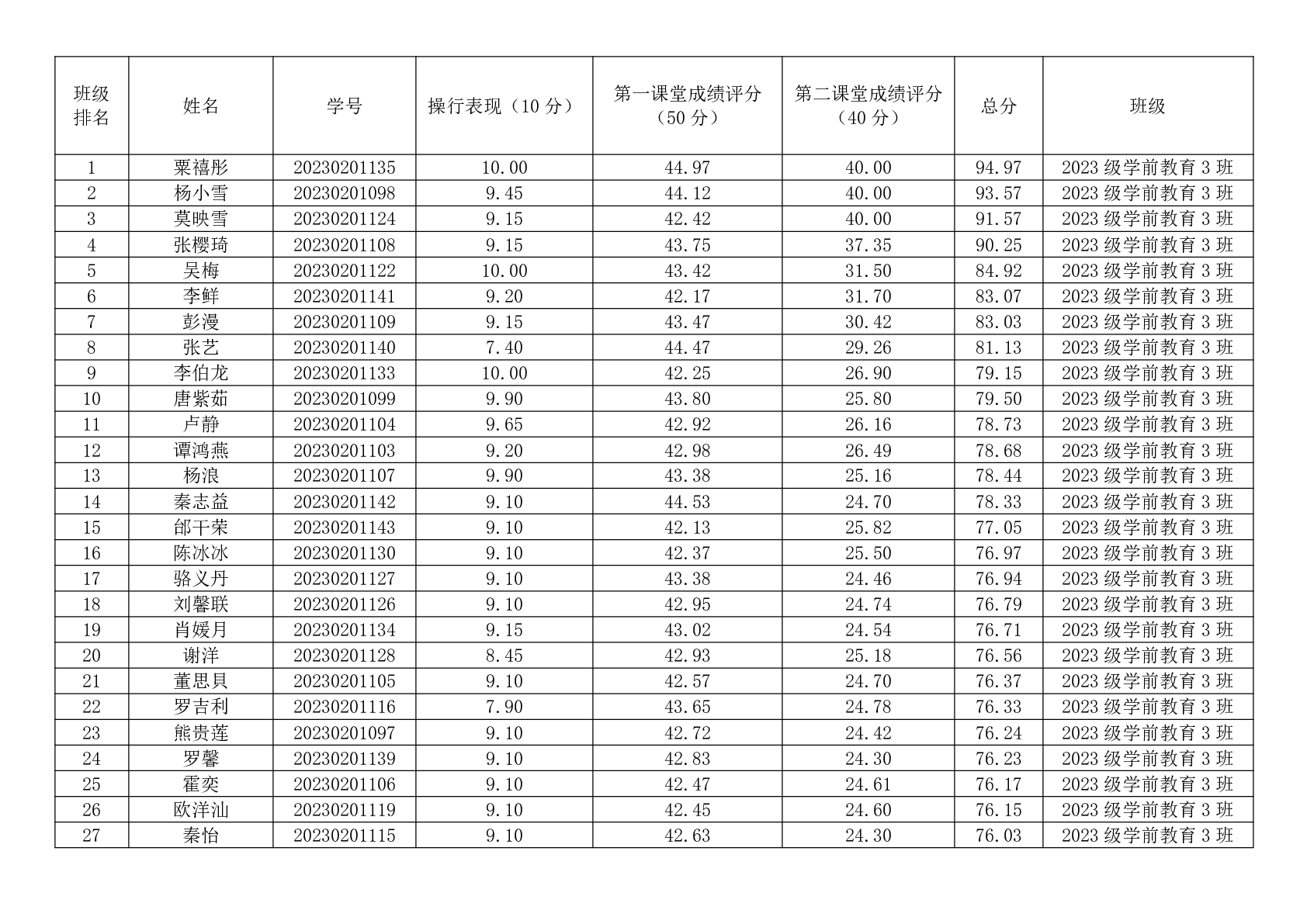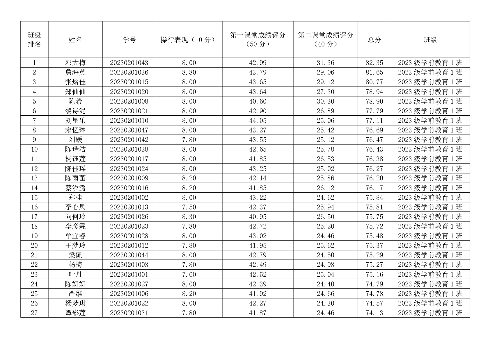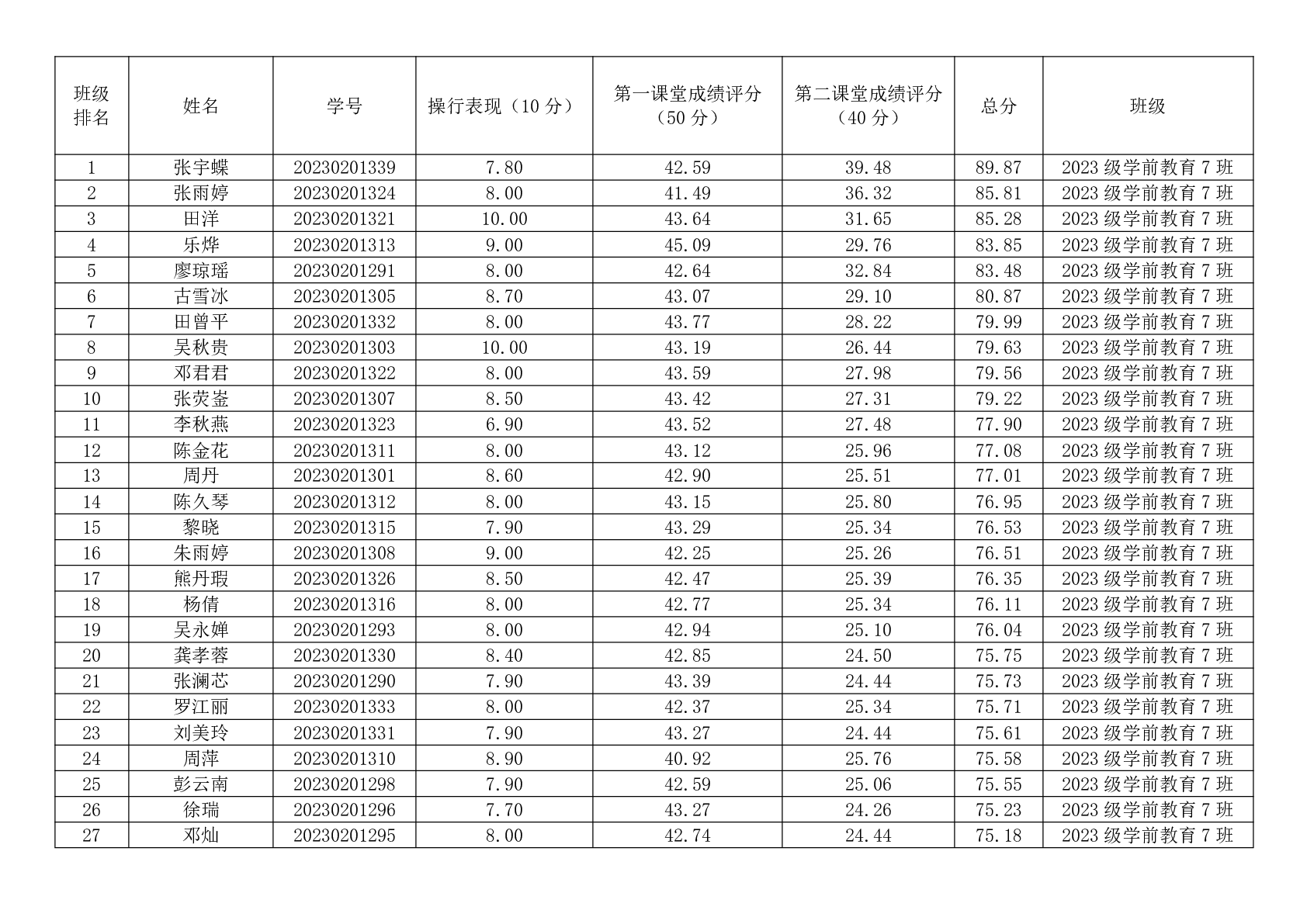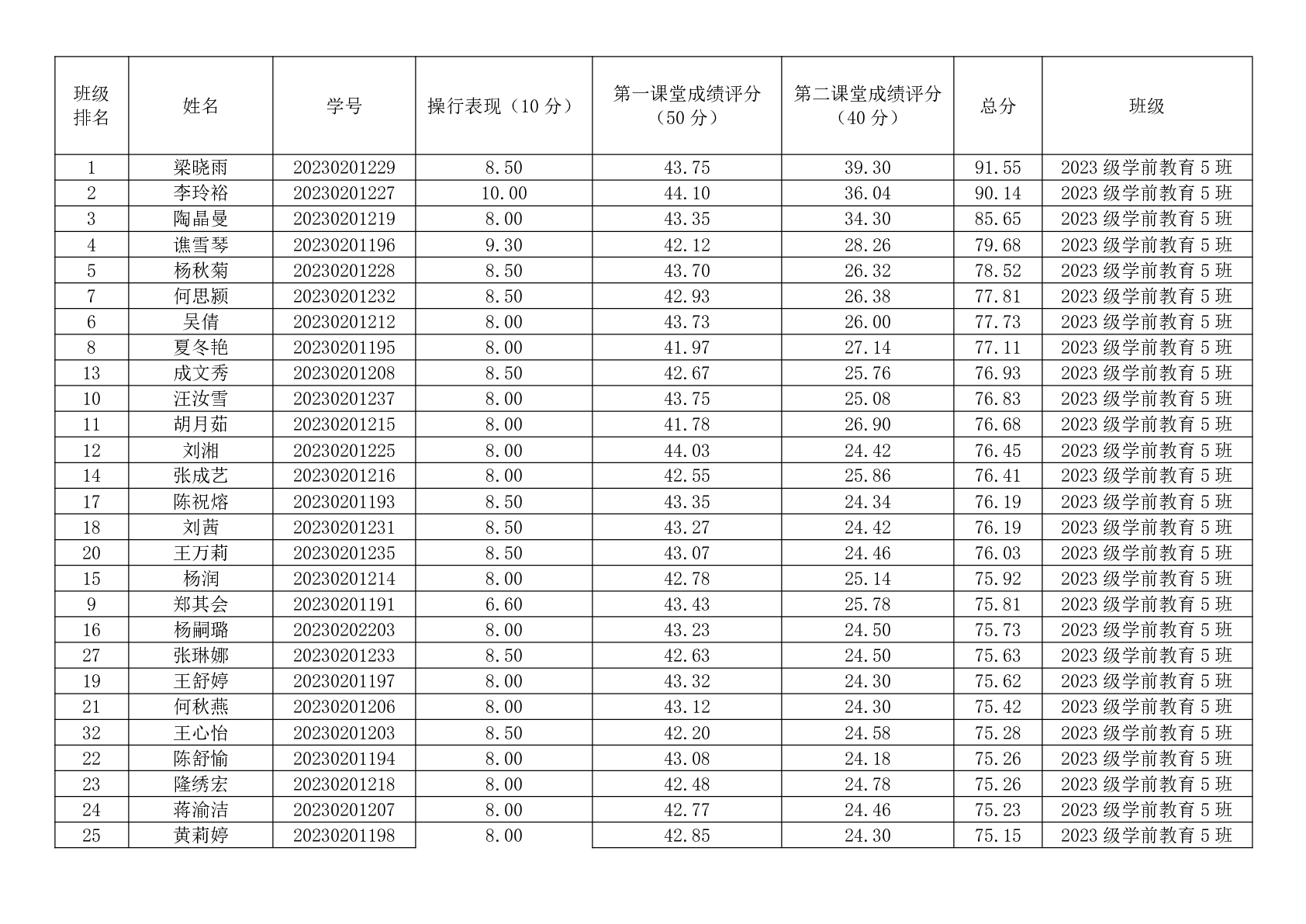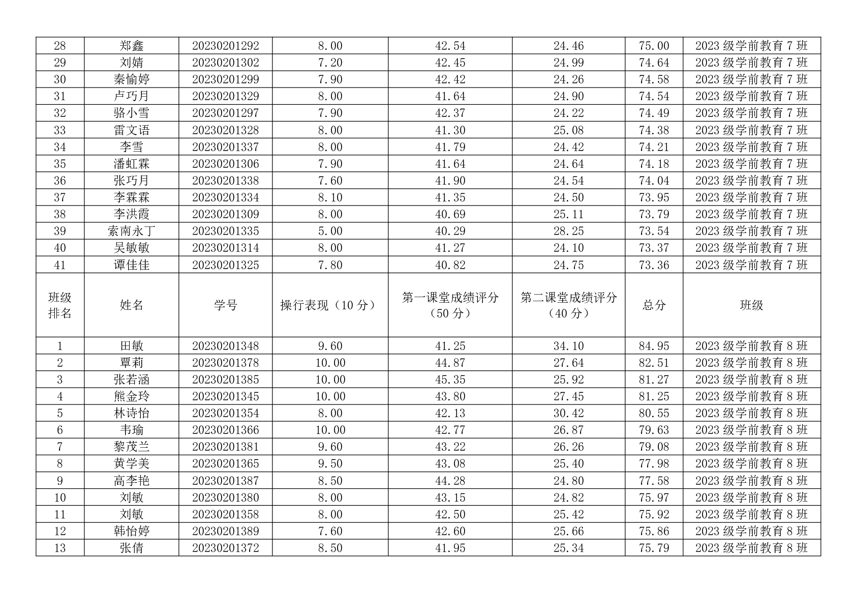 教育学院2024-2025学年学生综合素质测评成绩公示