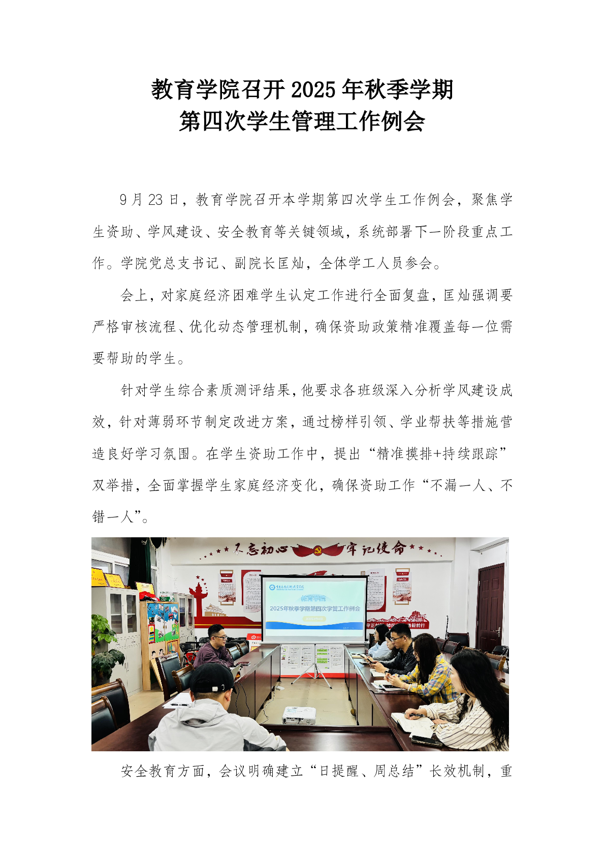 教育学院召开2025年秋季学期 第四次学生管理工作例会