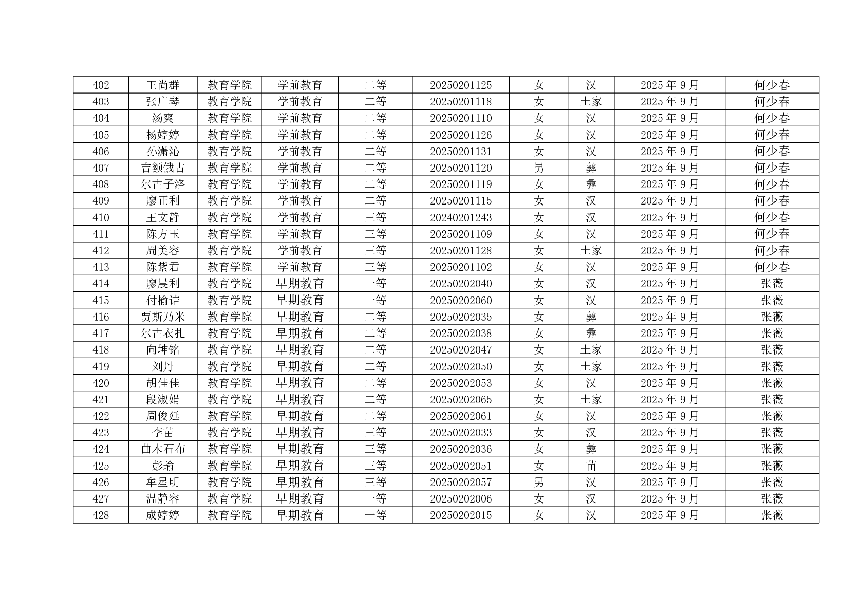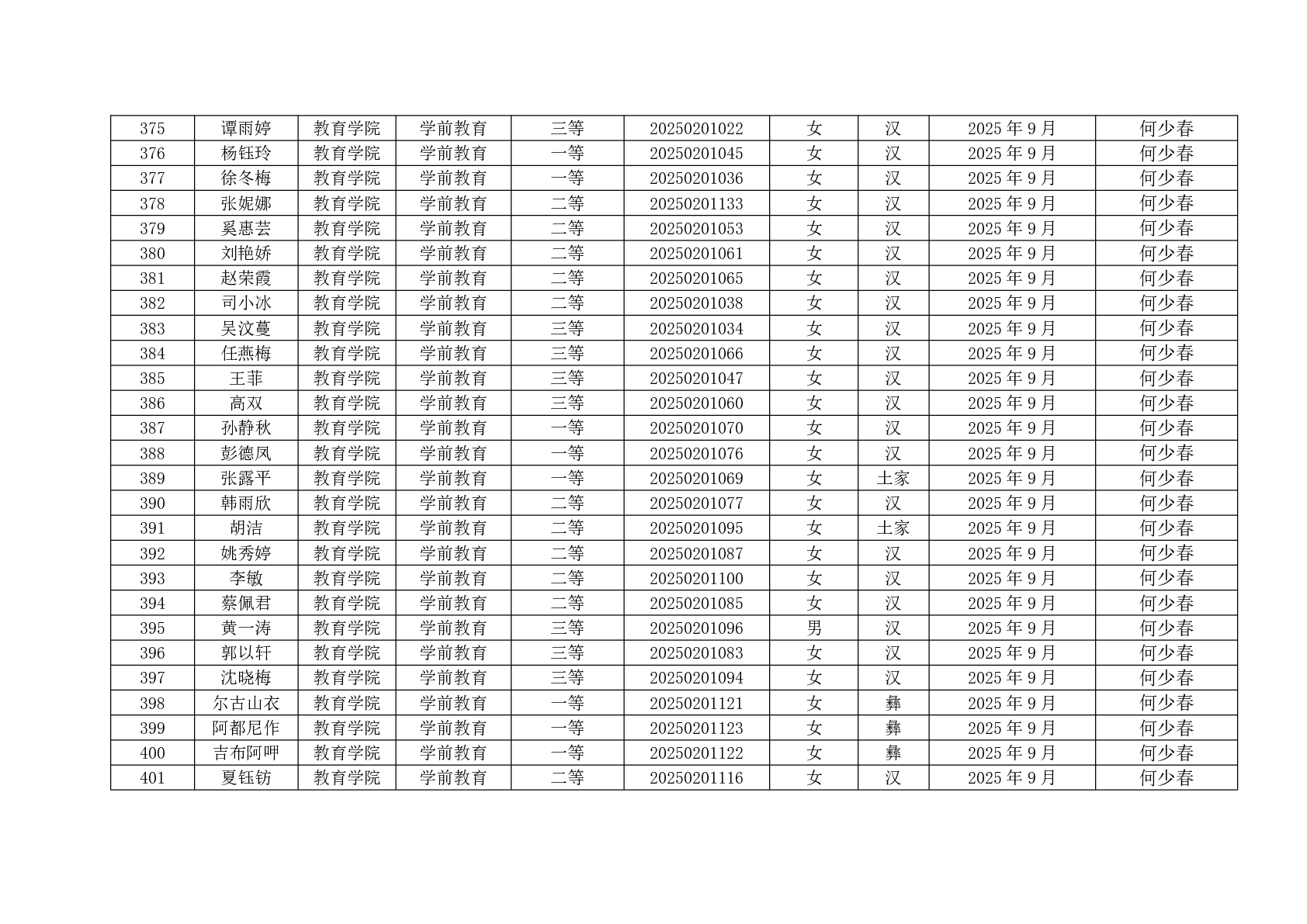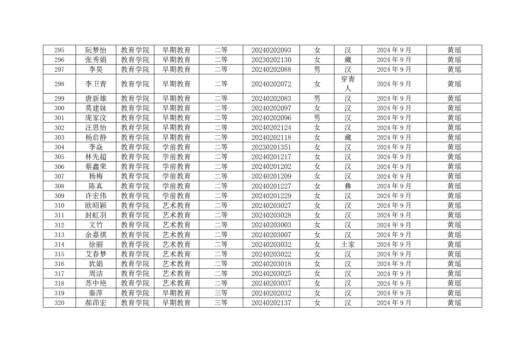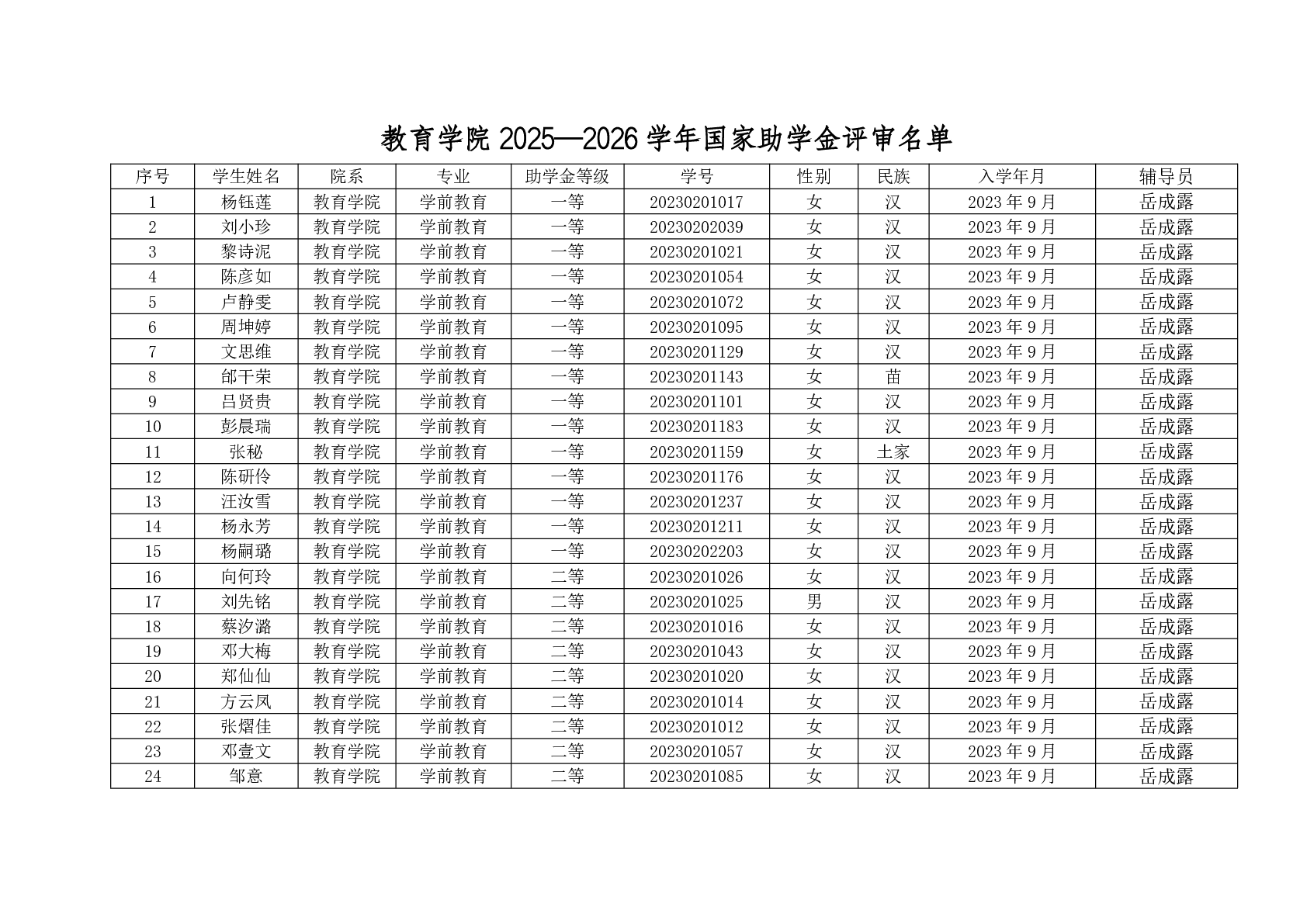 教育学院2024-2025学年国家励志奖学金评审结果公示