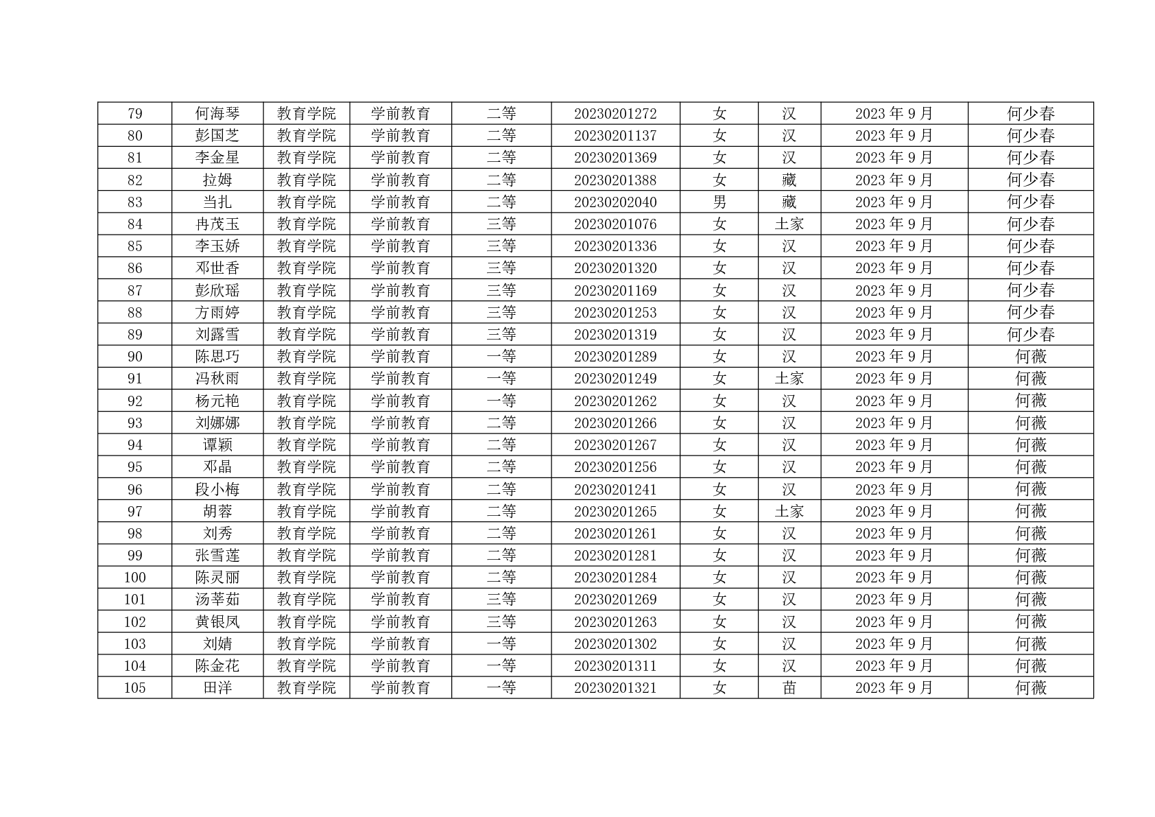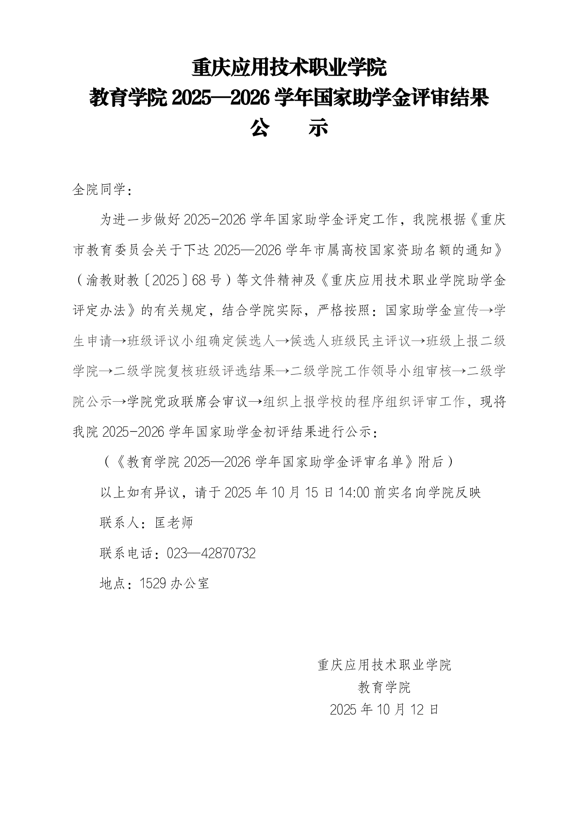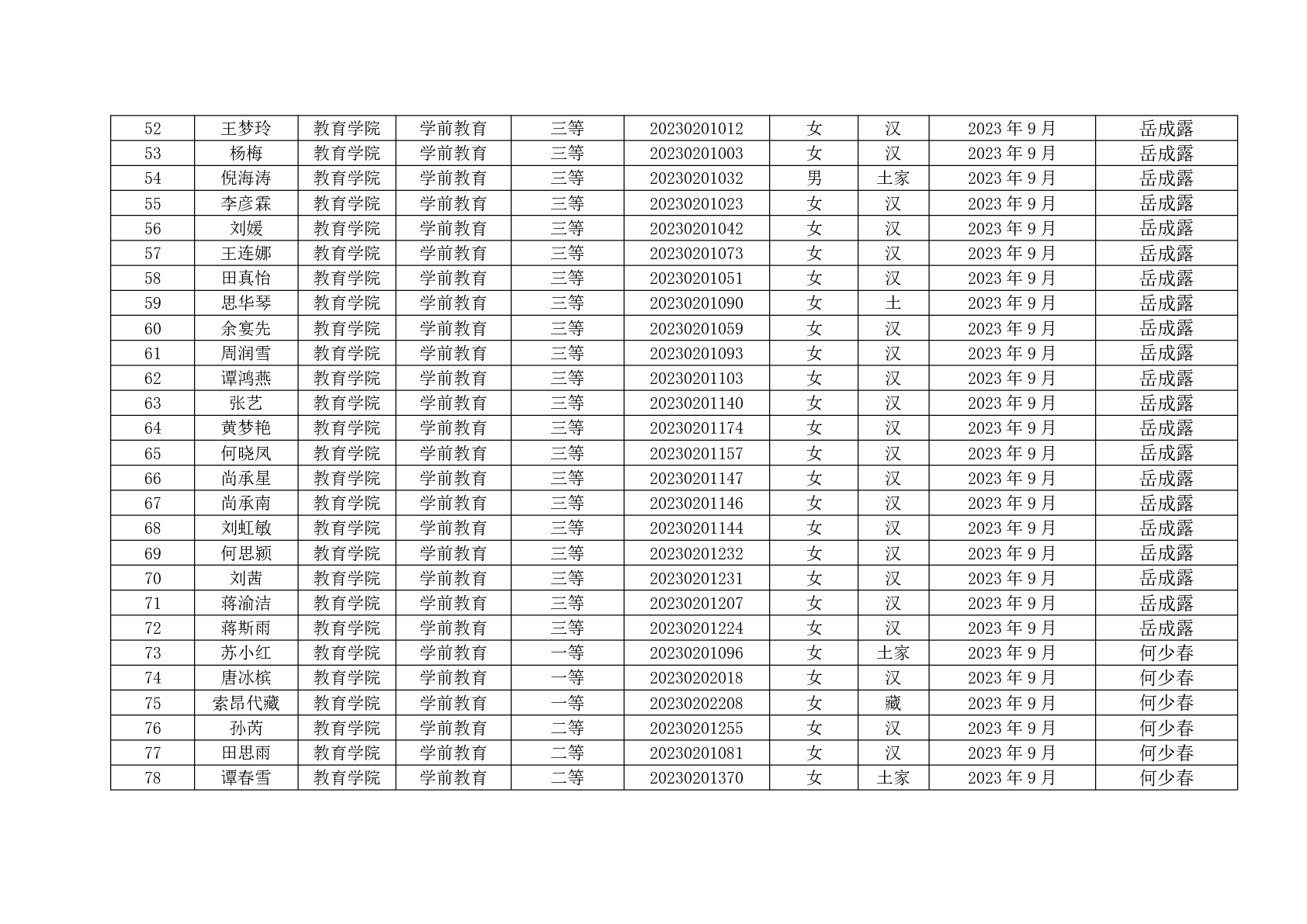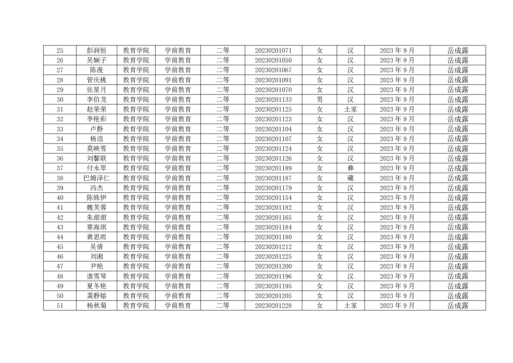 教育学院2024-2025学年国家励志奖学金评审结果公示