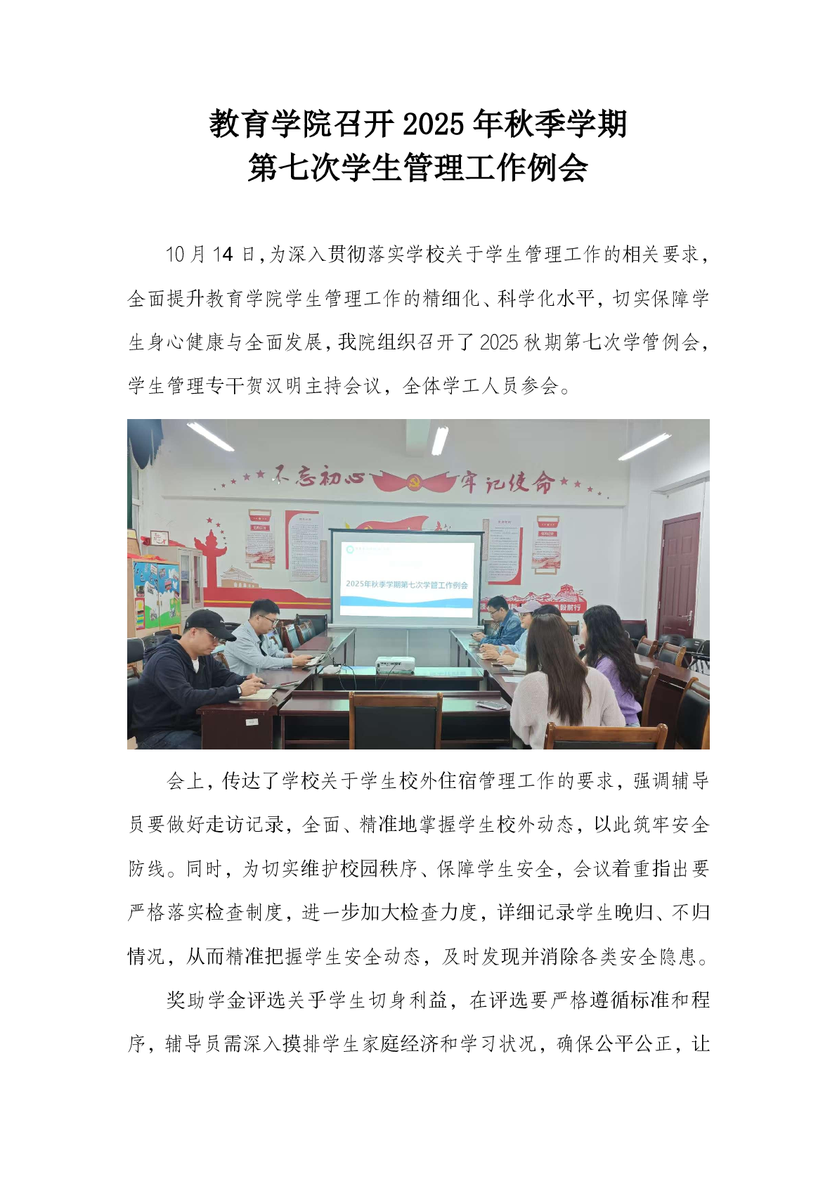 【学工例会】2025年秋季学期第七次学生管理工作例会
