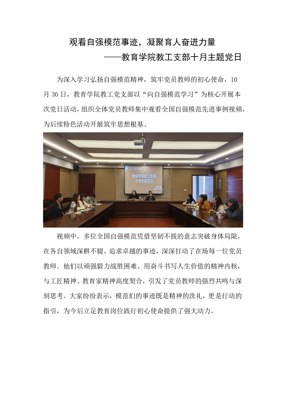 【主题党日】观看自强模范事迹,凝聚育人奋进力量 ——教工支部主题党日