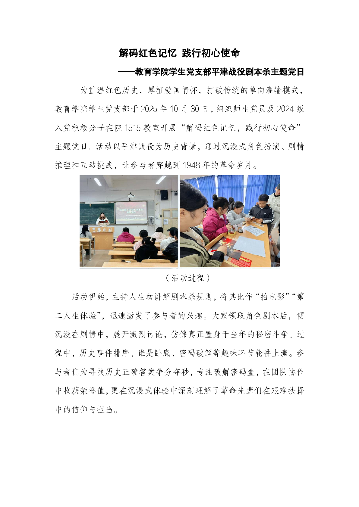 【主题党日】解码红色记忆 践行初心使命 ——学生党支部平津战役剧本杀主题党日
