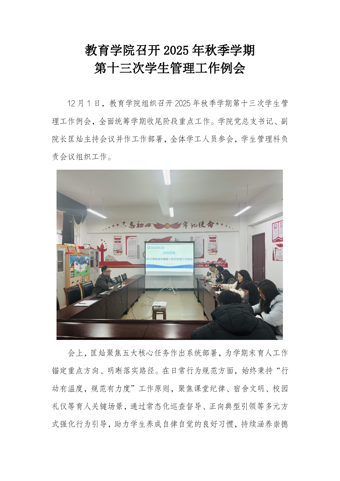 【学工例会】2025年秋季学期第十三次学生管理工作例会